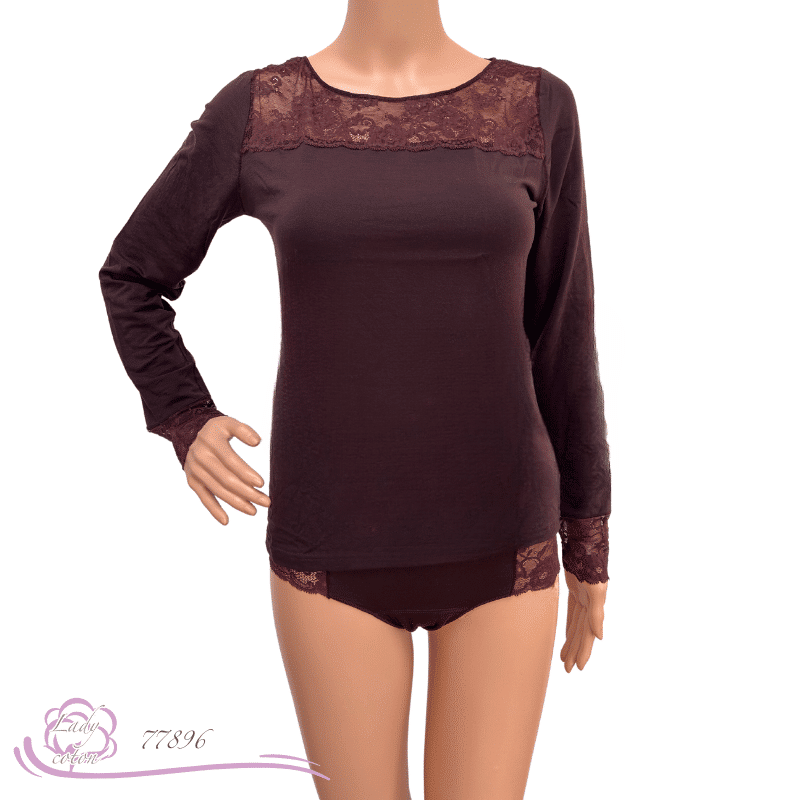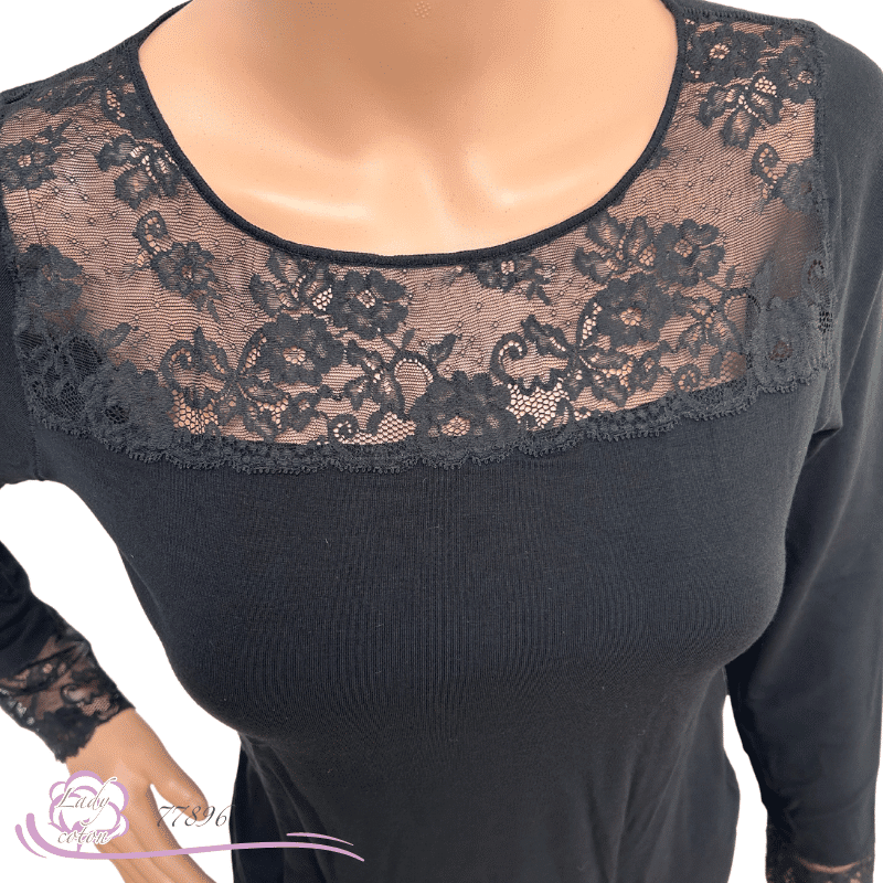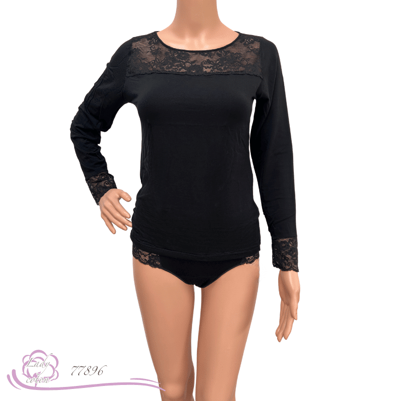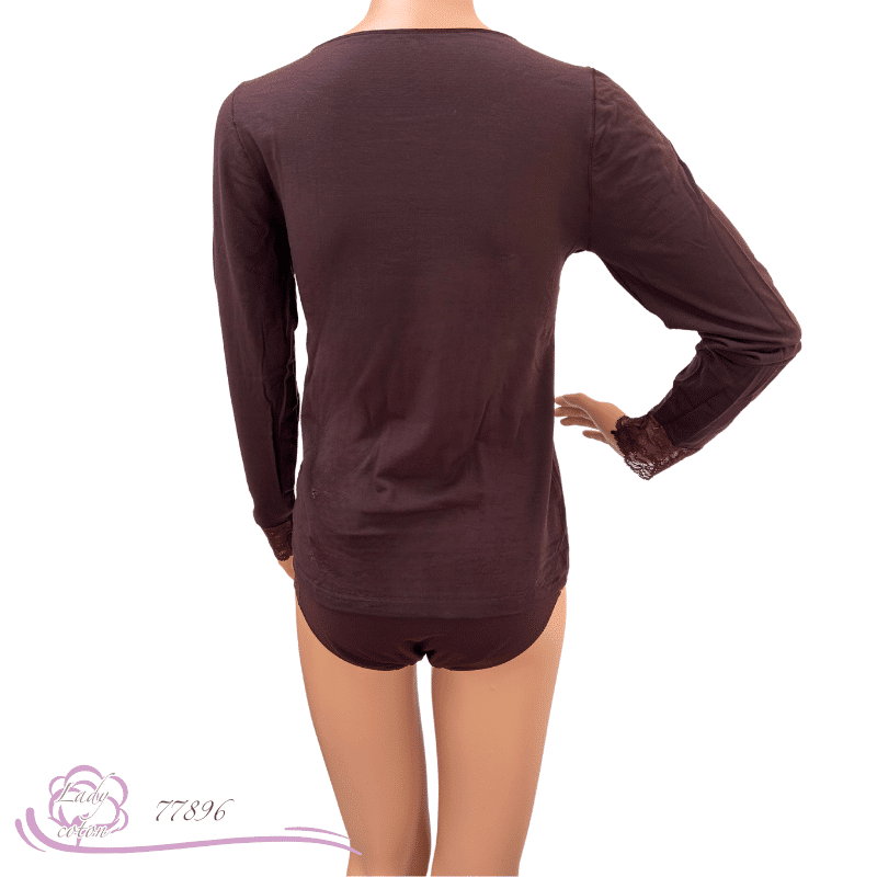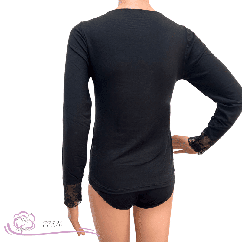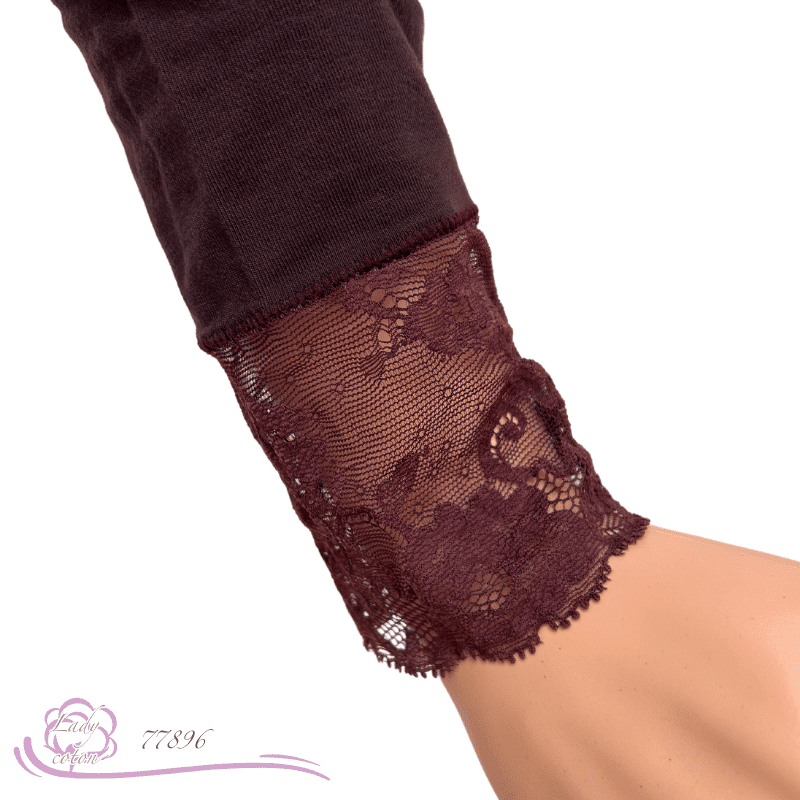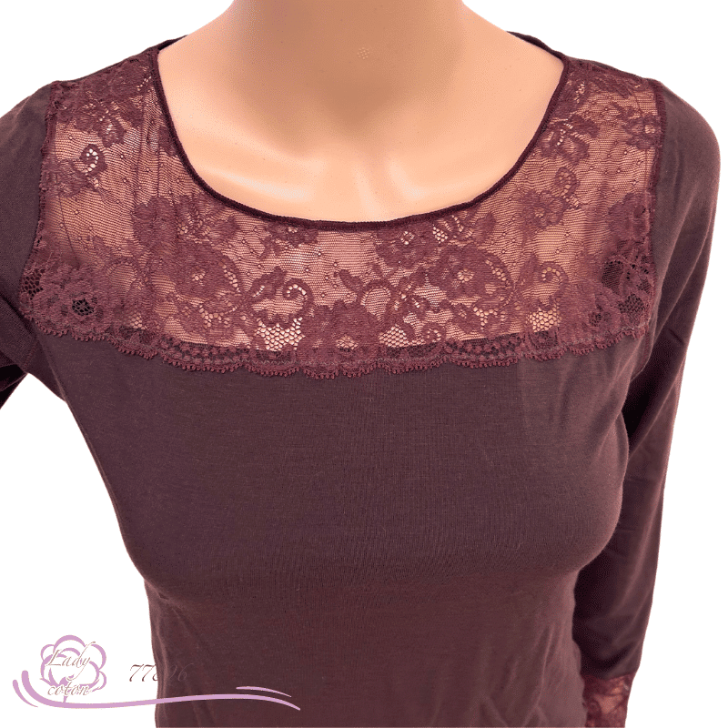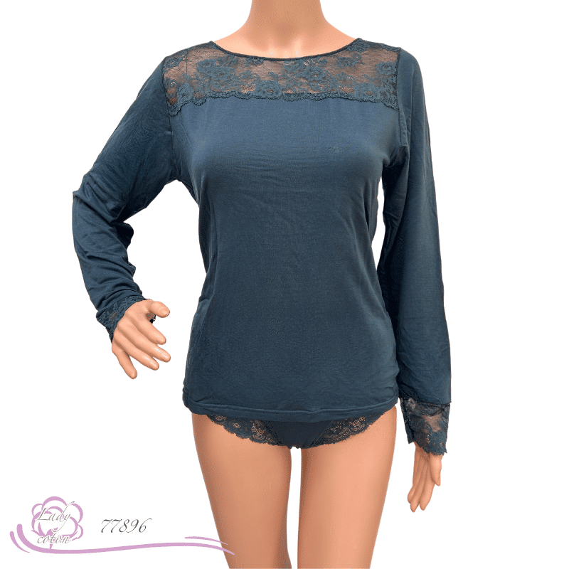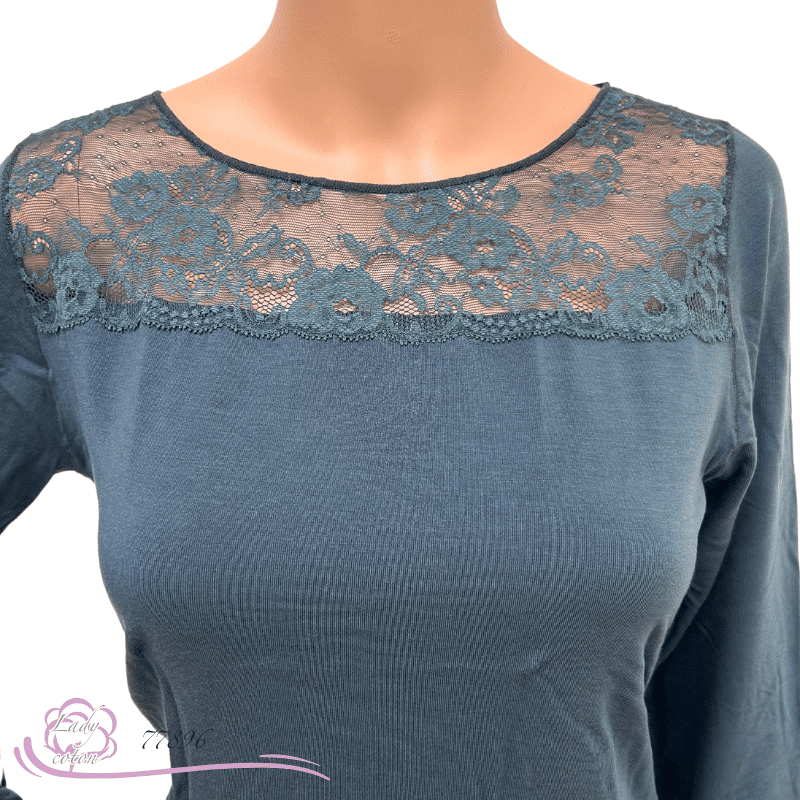 La chemise eucalyptus dentelle Avet présente, en premier lieu, une dentelle de Calais délicate qui met en valeur votre décolleté. De plus, cette dentelle se trouve également au niveau des poignets. Cela crée un effet garanti lorsqu’elle est portée avec un pull à manches 3/4 ou un chemisier. Ainsi, vous pouvez choisir cette chemise eucalyptus en noir, violine, ou plus récemment en bleu pétrole, selon vos préférences.