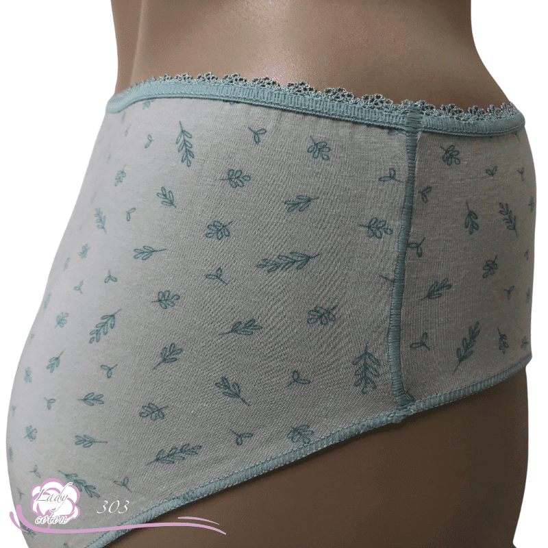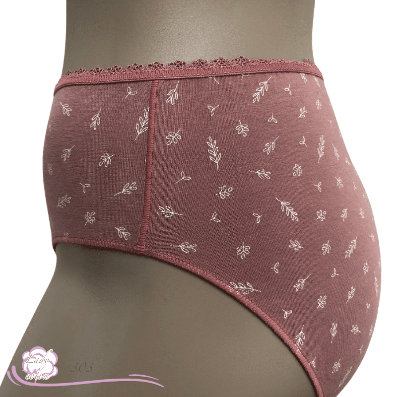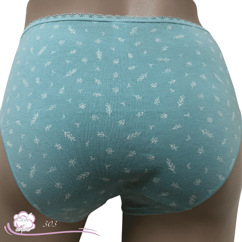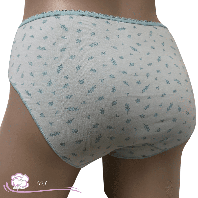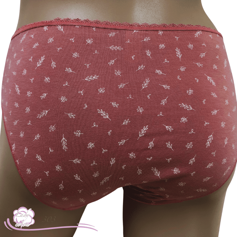 Ensuite un fond ou gousset doublé de coton et aussi un emboîtement parfait des fessiers. Une hauteur de taille en midi. De plus un élastique en picot tout autour de la taille puis des élastiques plats autour des cuisses. En effet cette culotte duo coton floral est très discrète sous les pantalons.