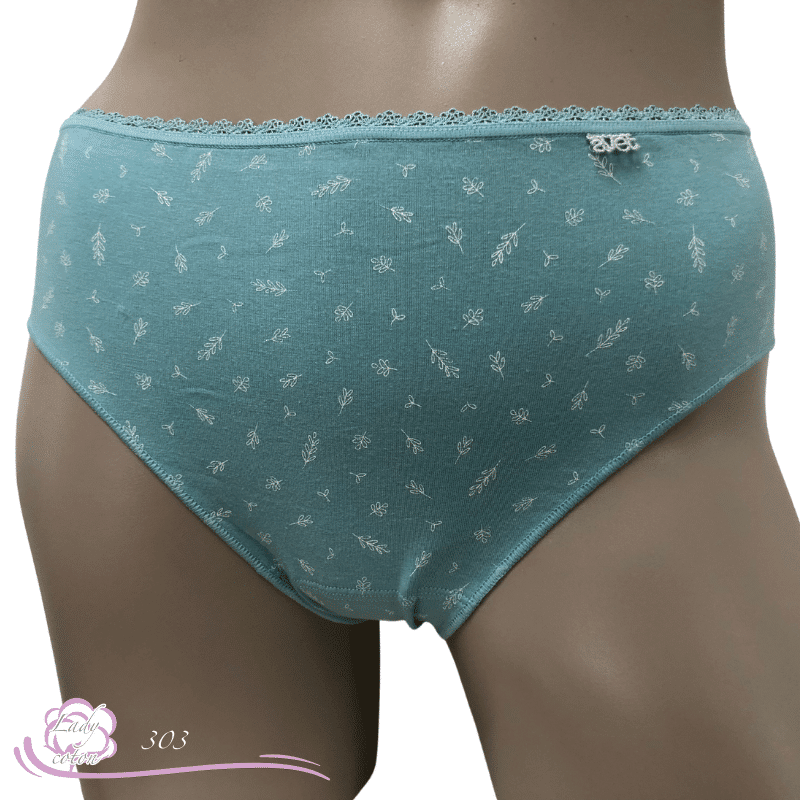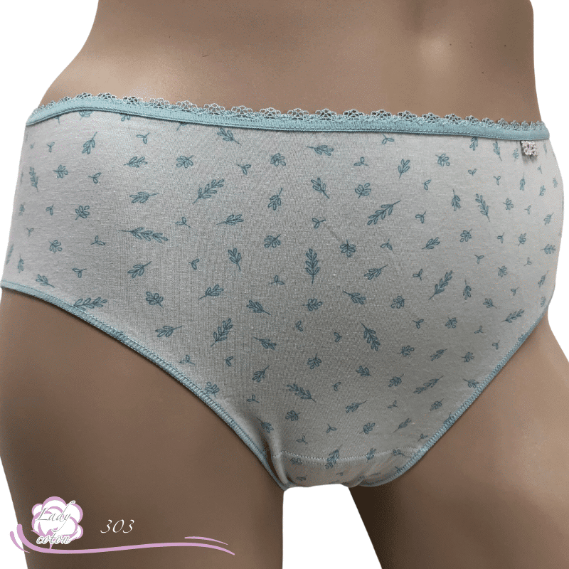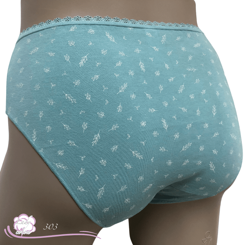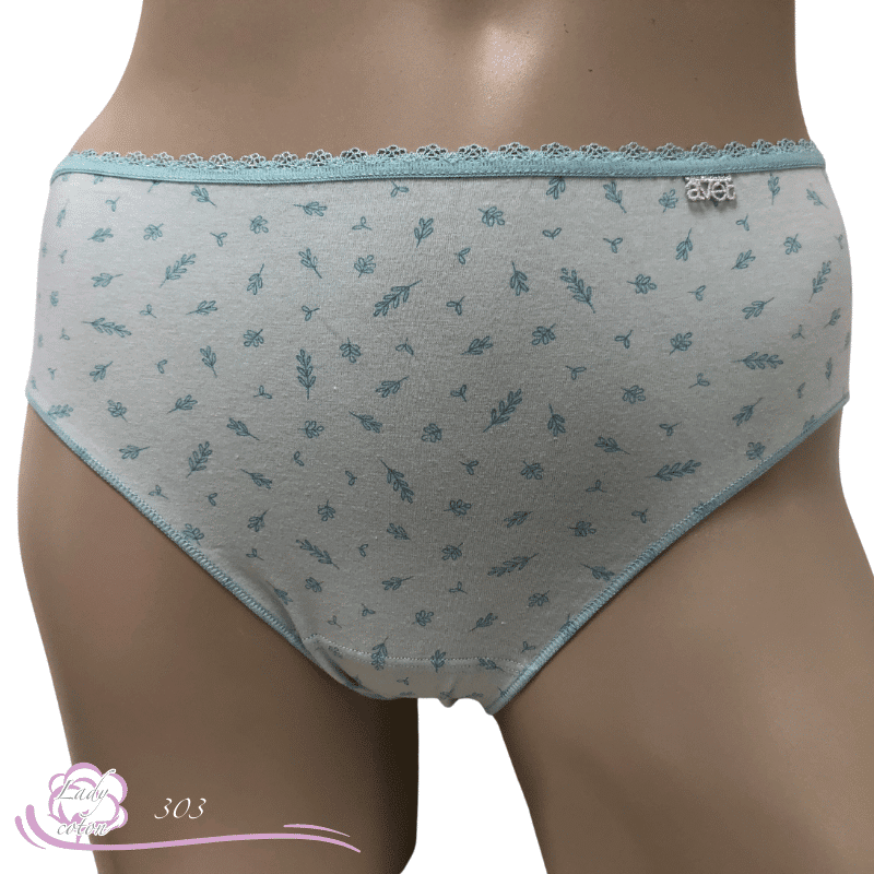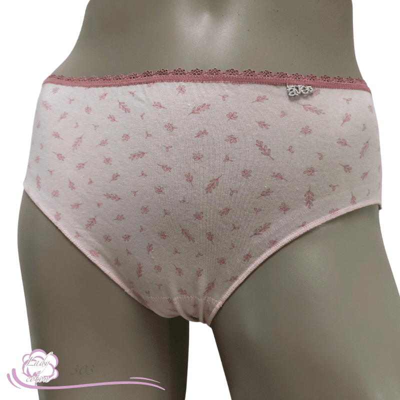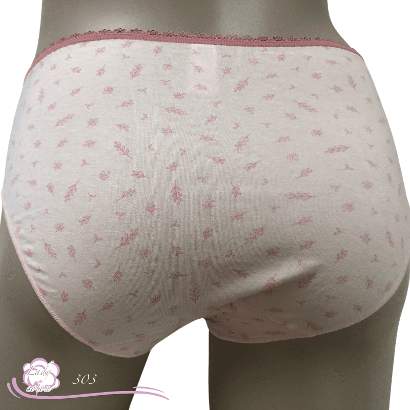 Ensuite un fond ou gousset doublé de coton et aussi un emboîtement parfait des fessiers. Une hauteur de taille en midi. De plus un élastique en picot tout autour de la taille puis des élastiques plats autour des cuisses. En effet cette culotte duo coton floral est très discrète sous les pantalons.