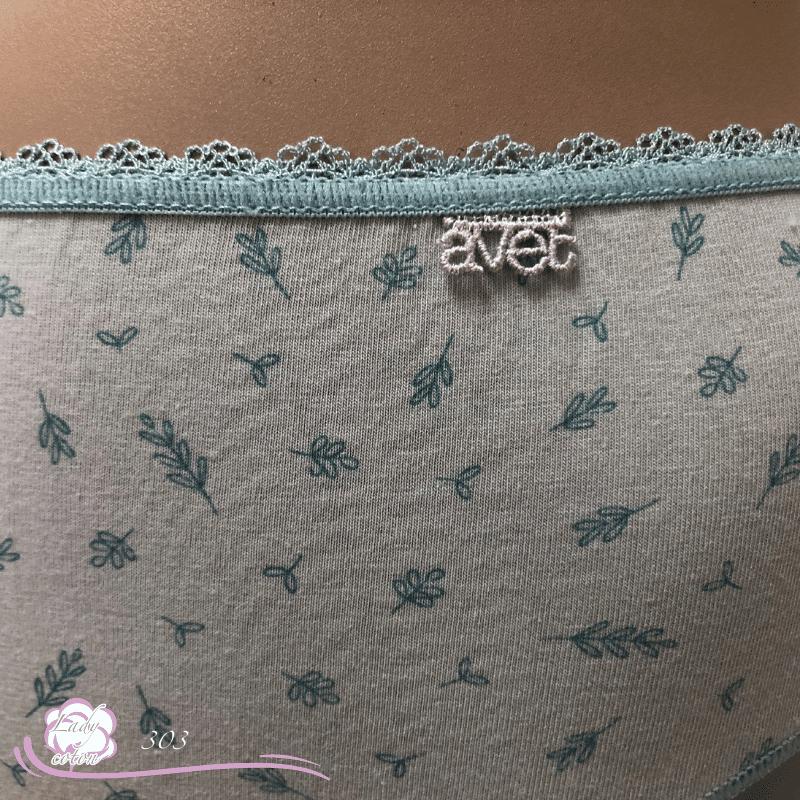 Par contre elle n’existe qu’en M et L. D’un autre côté le logo de la marque AVET est brodé et cousu sur le côté gauche de la culotte duo coton floral. Label international confiance textile OKEO-TEX standard 100 cela garantit l’absence de substance nocive pour la peau. Du coup votre peau est protégée.