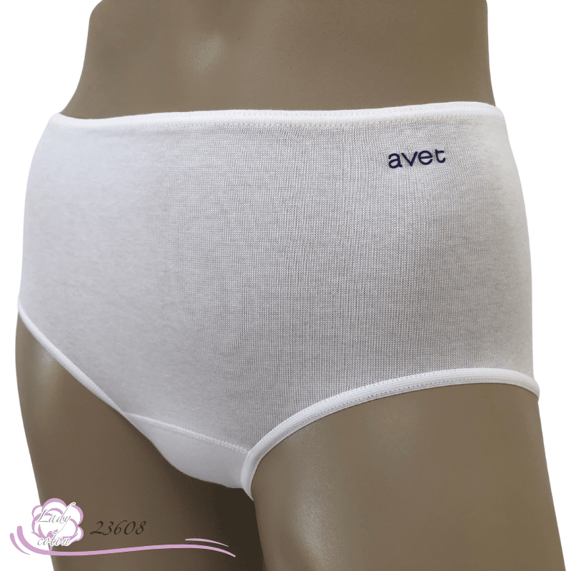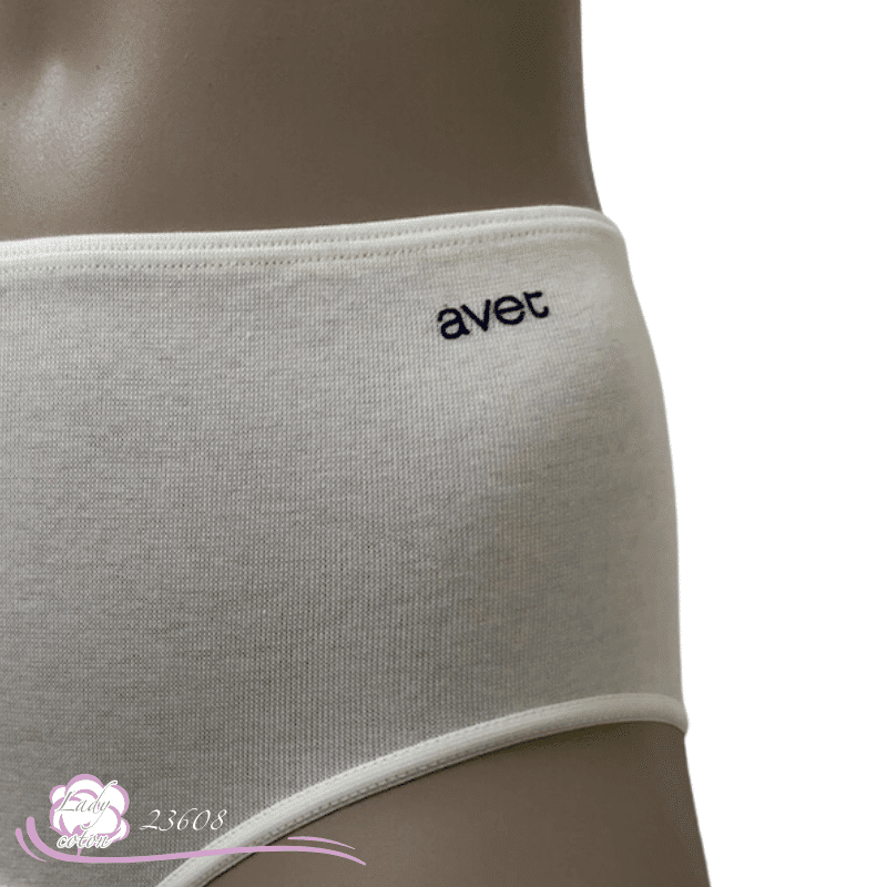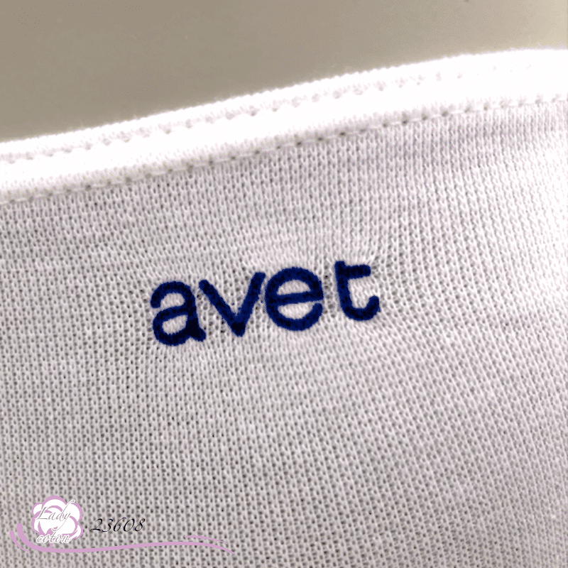 Puis le logo Avet écrit en bleu pour les modèles clairs se trouve sur le haut gauche de cette culotte et en blanc pour la noire.