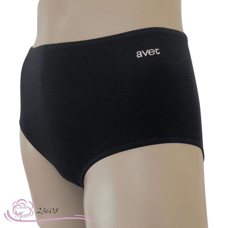 Puis le logo Avet écrit en bleu pour les modèles clairs se trouve sur le haut gauche de cette culotte et en blanc pour la noire.