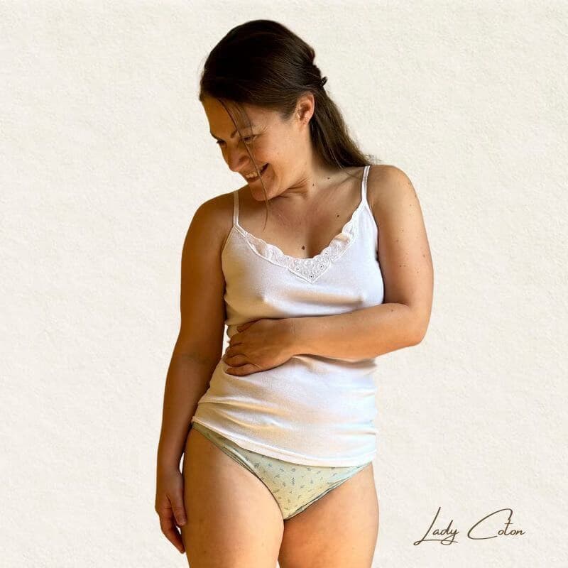 D’ailleurs le TOP Broderie est 100% COTON, pour les peaux délicates et fragiles, c’est un atout indéniable. Pour finir, Sans couture sur les côtés, il permet une liberté de mouvement sans frottement. En effet la fabrication en tube est une spécialité de la marque AVET.