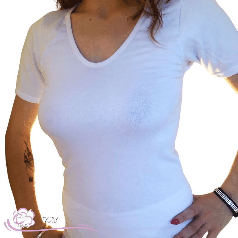 De plus, la généreuse encolure en V à revers cousue permet de porter ce tee shirt 100% coton sous un chemisier sans qu’il soit visible. D’ailleurs cette caractéristique rend ce tee-shirt extrêmement polyvalent, adapté aussi bien pour des tenues décontractées que plus habillées.