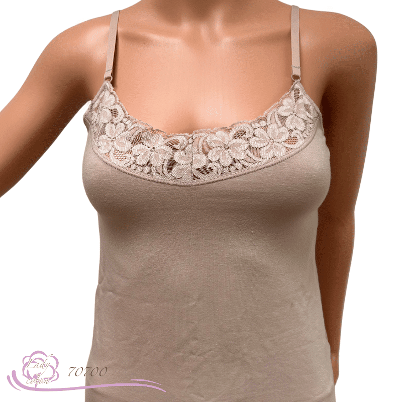 Que vous le portiez seul en été avec un jean, ou bien sous un pull ou un chemisier en hiver, vous aurez une sensation de bien-être tout au long de l’année. Effectivement, sa matière respirante en coton peigné vous garantit une fraîcheur agréable en toutes circonstances. Tandis que la dentelle de Calais apporte une touche de féminité et de raffinement.